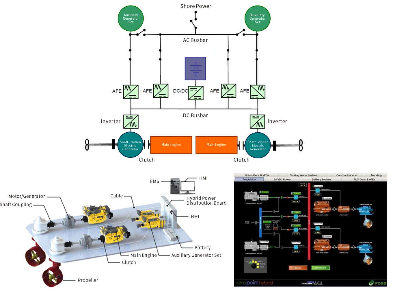 CRH7114 series tug hybrid propulsion system is a hybrid propulsion system that integrates linear drive device, energy management system and / or energy storage device. Port tug hybrid propulsion system is composed of generator set, lithium battery pack, DC conversion system, etc. The generator set and lithium battery pack are connected to the DC bus through the centralized frequency conversion control distribution system of DC bus.