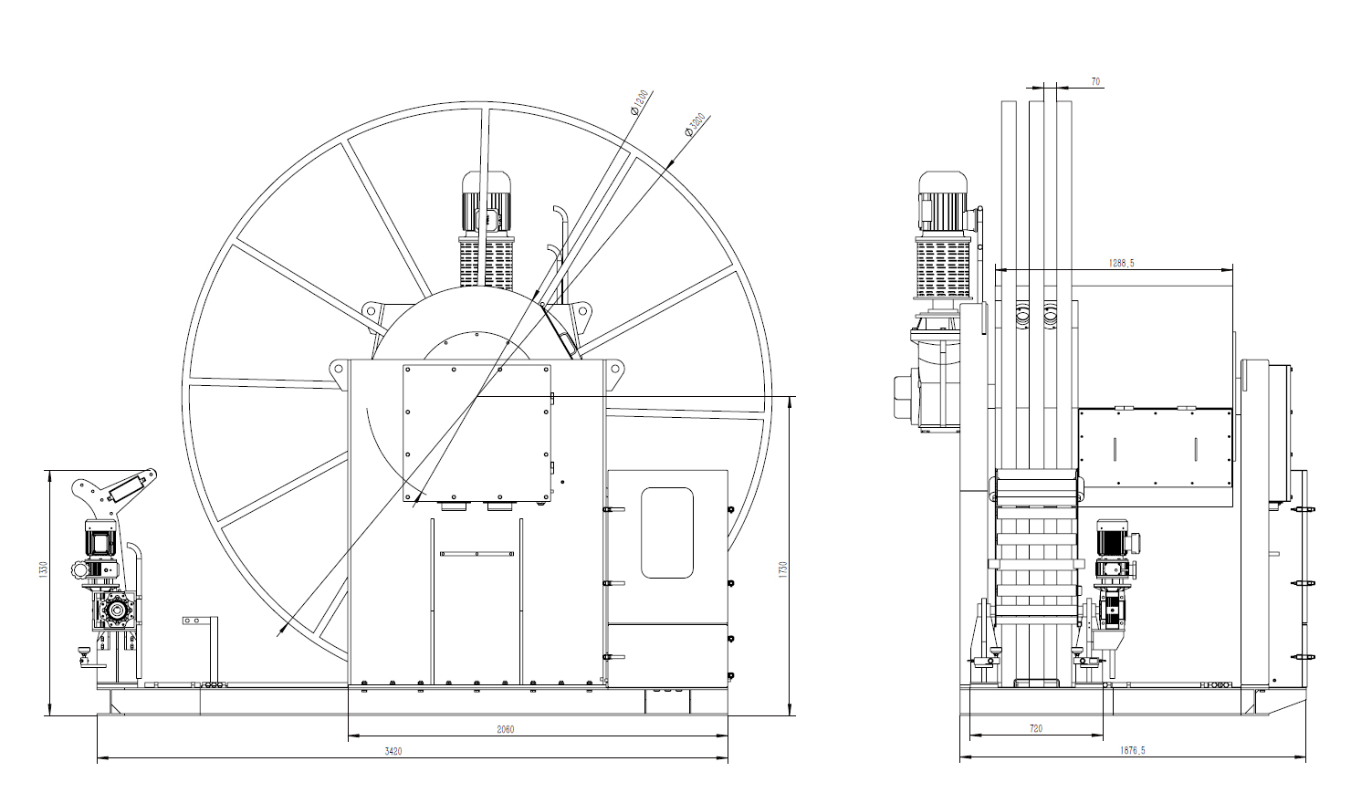 產(chǎn)品特性 1)使用高壓電纜可以減少線纜的連接,提升大型船舶岸電使用的便捷性。 2)具有速度連續(xù)可調(diào)功能,勻速收放電纜。 3)可選手/自動(dòng)收儲和放出岸船連接電纜,可選排線功能。 4)具有電纜接點(diǎn)滑環(huán)溫度檢測功能。 5)具有力矩限制功能,當(dāng)電機(jī)或系統(tǒng)故障時(shí),磁滯聯(lián)軸器能保證電纜可以被順利拉出。 |